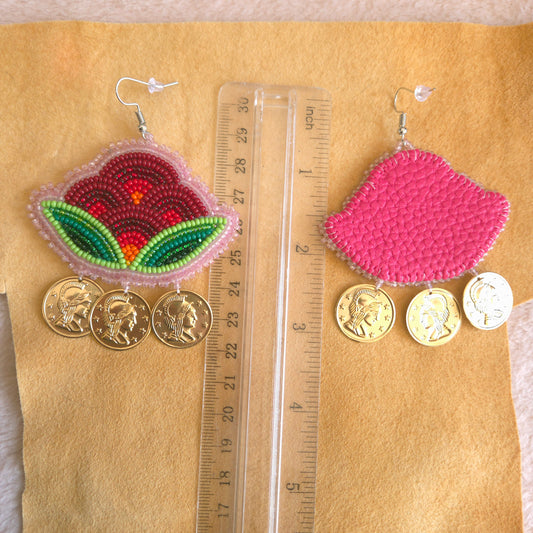 Sold outRed Floral Hook Earrings