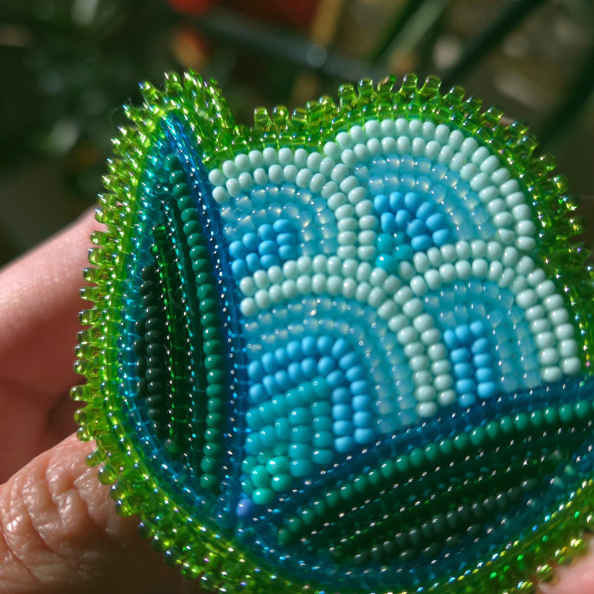 Various shades of blue and turuqoise old style woodland flowers edged in a transparent green.