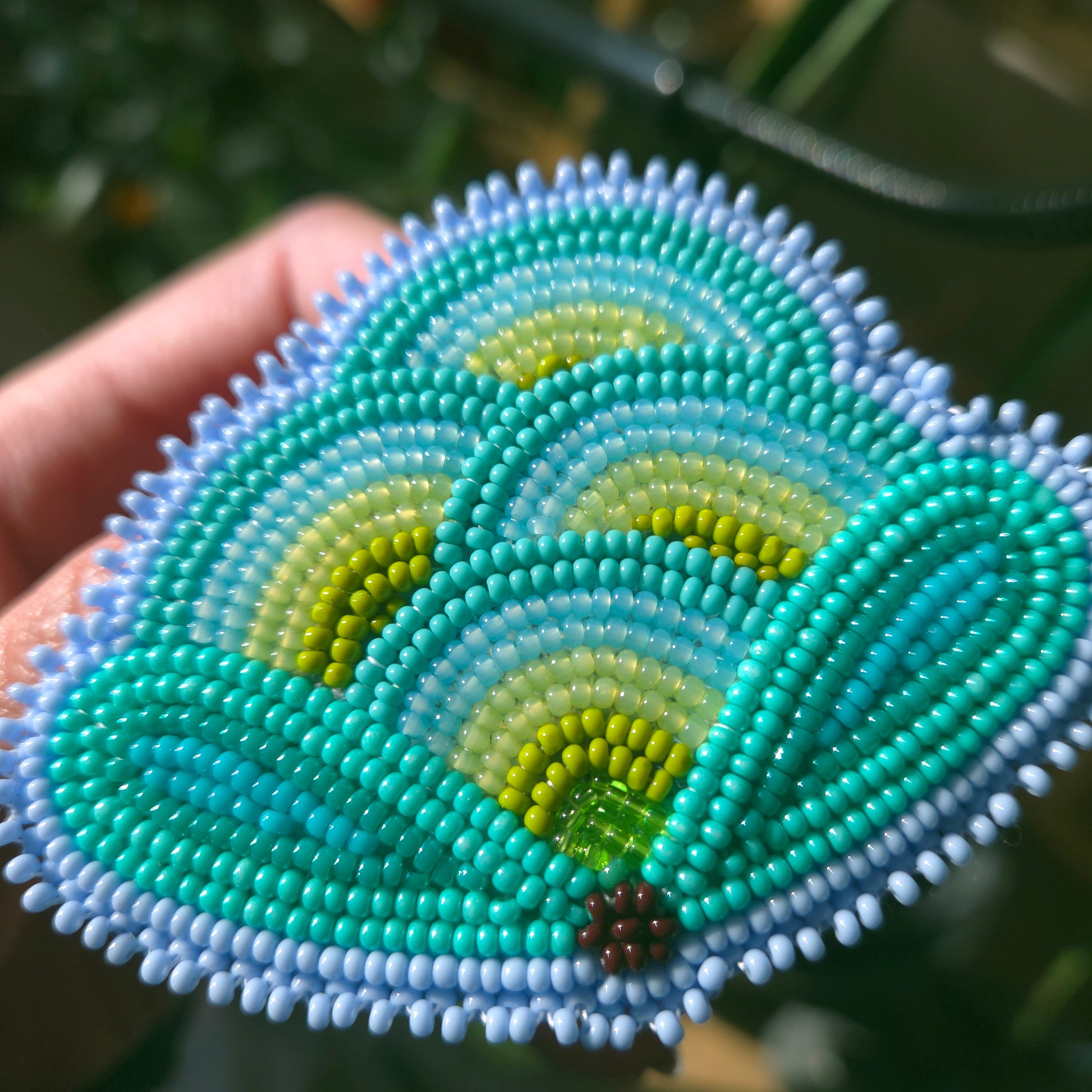 On faux green leatherette backing and on fingernail posts.