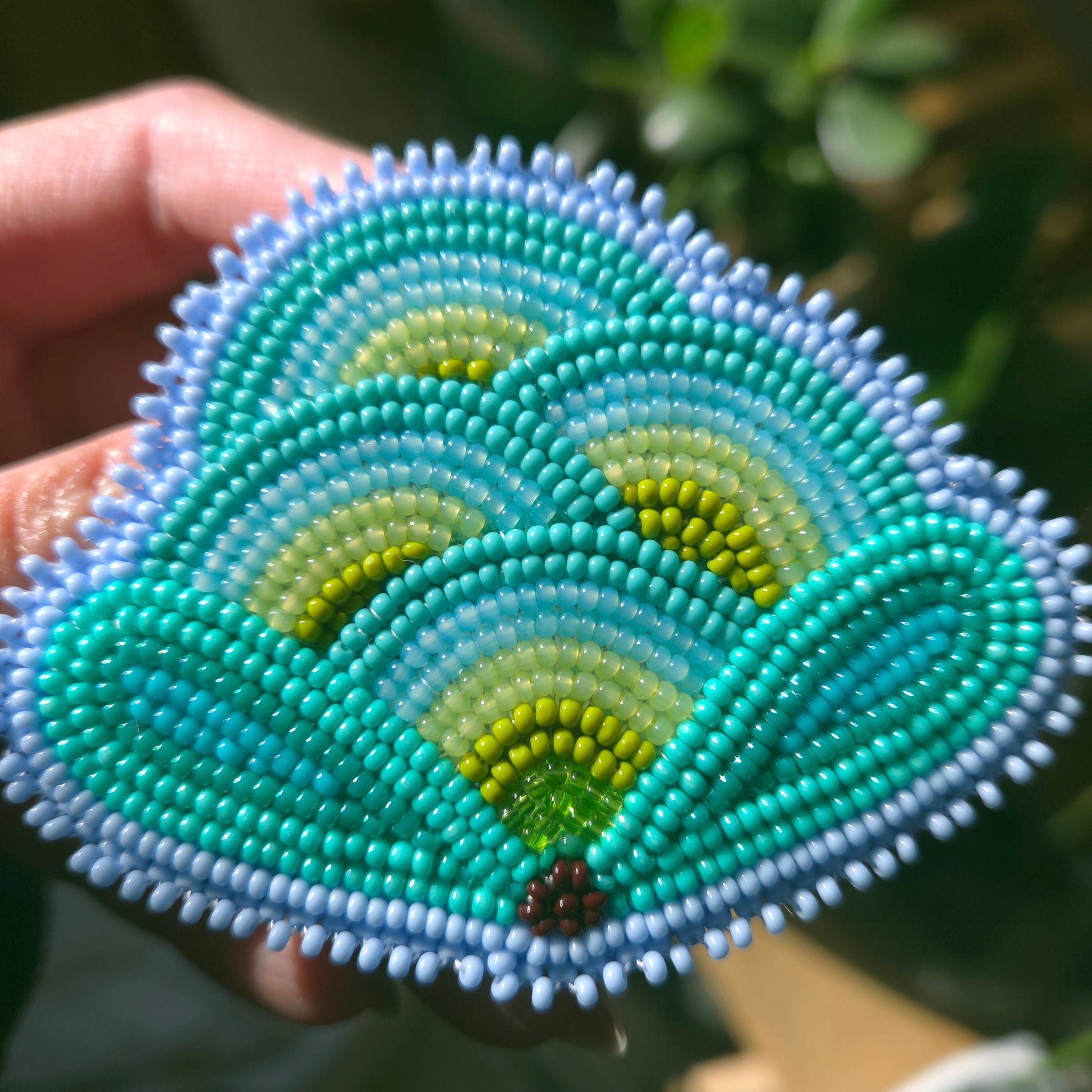 Turquoise and green woodland florals edged in powder blue.